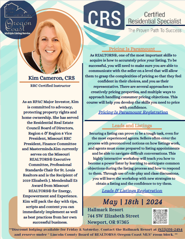 Pricing: https://www.crs.com/education/5182024-lincoln-county-board-of-realtors-classroom/