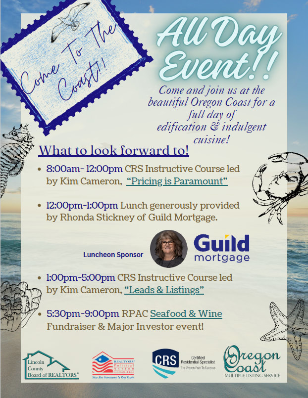 Two of the best CRS Designation classes are being offered with 8 hours Oregon CE credit included, followed by an amazing Seafood & Wine dinner celebrating RPAC. You don't need to be pursuing the CRS designation to benefit from these timely classes, but we'll help you make sense of that process if you have questions. Then network with your fellow RPAC investors over dinner, or become one at this special event! Learn about all that the REALTOR® PAC does to be your voice for real estate advocacy while sampling an amazing assortment of wines and fresh seafood.